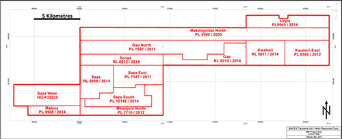 The Company continues to work with the Ministry of Mines in Tanzania to find a sensible solution to the Retention Licence issue. Helio’s SMP project comprises 8 Prospecting Licenses (PLs), 4 Retention Licences (RLs), and one licence under application (see map below). The four Retention Licences are RL 0009 (Saza), RL 0010 (Gap), RL 0011 (Kwaheri), and RL 0012 (Illunga). Under the Tanzanian Mining Act, 2010, Retention Licences were issued to projects where a mineral resource had been identified, but the projects could not be developed to mine status by reason of technical constraints, or other economic factors which are temporary in nature.