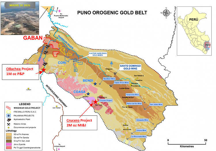 Winshear Gold Corp. is a Canadian-based minerals exploration company advancing the Gaban Gold Project in the Puno region of Peru. The Company considers Gaban to be one of the hard-rock sources of gold contributing to the 700 km2 Madre de Dios alluvial goldfield, located 50 km north of, and downstream from, the Gaban gold project.