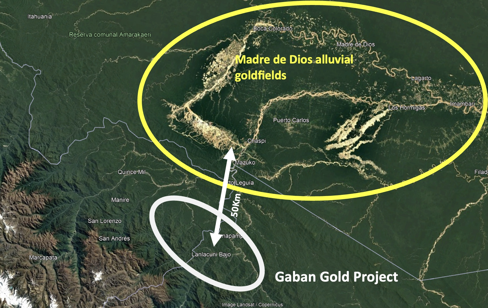 Figure 3: Gaban Project in relation to the Madre de Dios Alluvial Goldfields