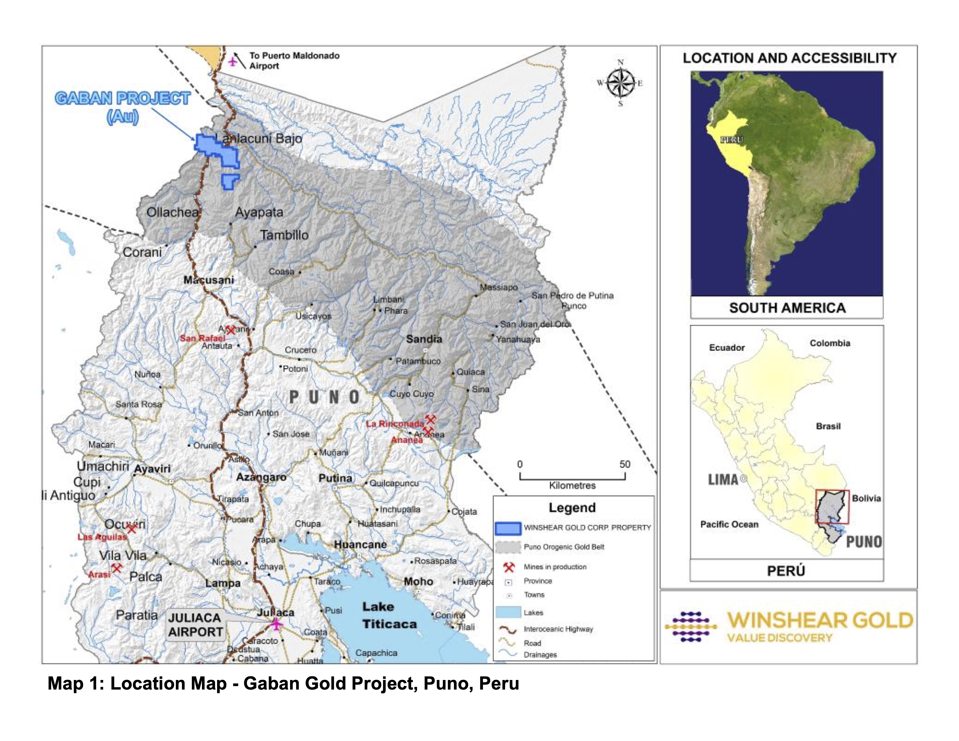 Winshear Gold Corp. (“Winshear Gold” or the “Company”) (TSX-V: WINS) reports its first sampling results from the Gaban Gold Project located in the Puno Orogenic Gold Belt (“POGB”) in south-eastern Peru.