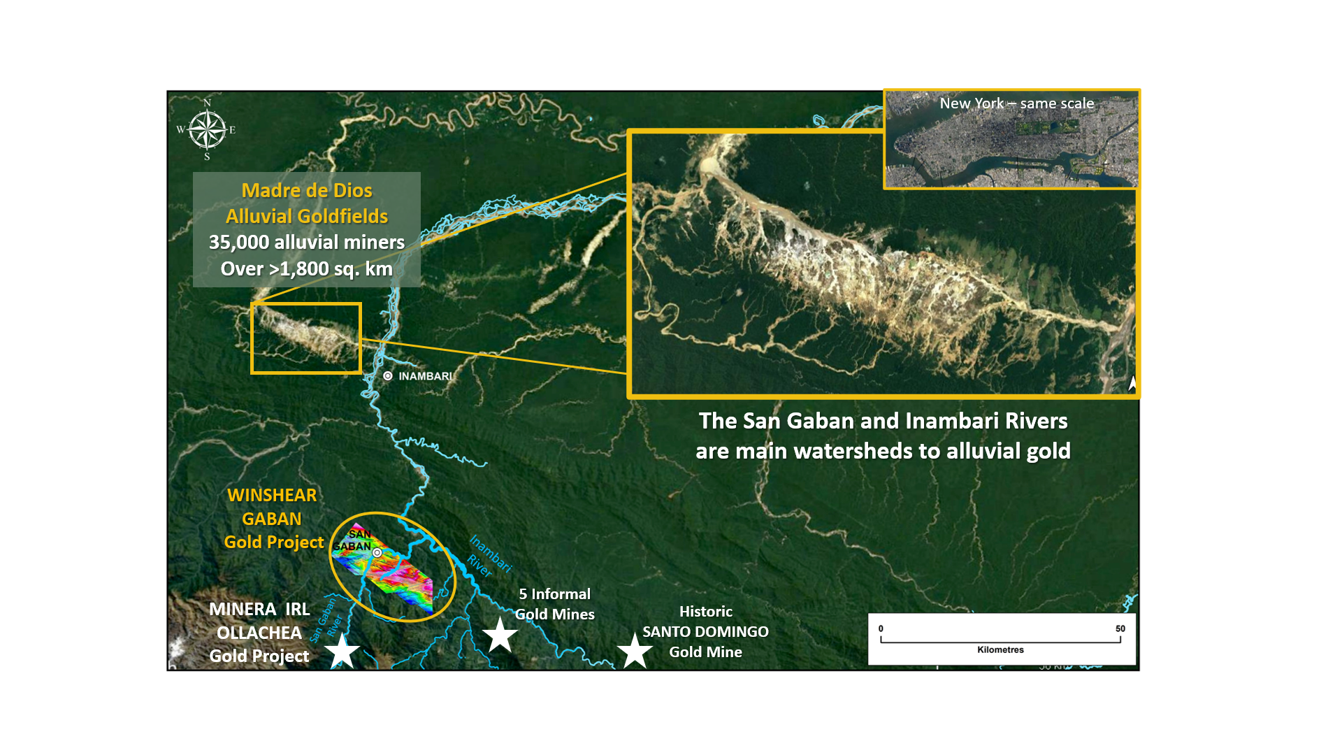 Figure 1: GABAN project at Juncture of San Gaban & Inambari Rivers above Alluvial Gold deposit at Madre de Dios